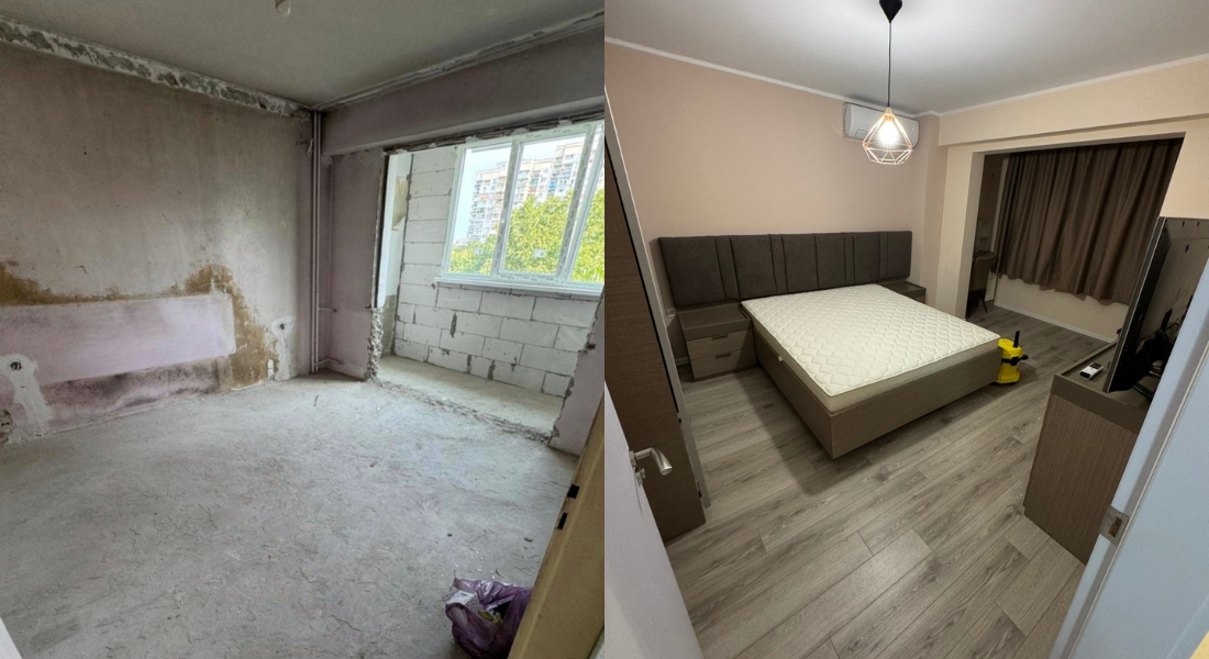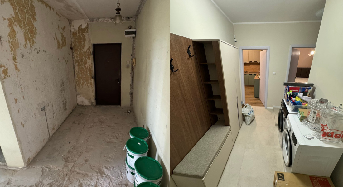 Ремонтът на апартамент, включващ две спални, хол, кухня, баня и коридор, бе изпълнен поетапно с фокус върху съвременния стил, функционалността и комфорта.