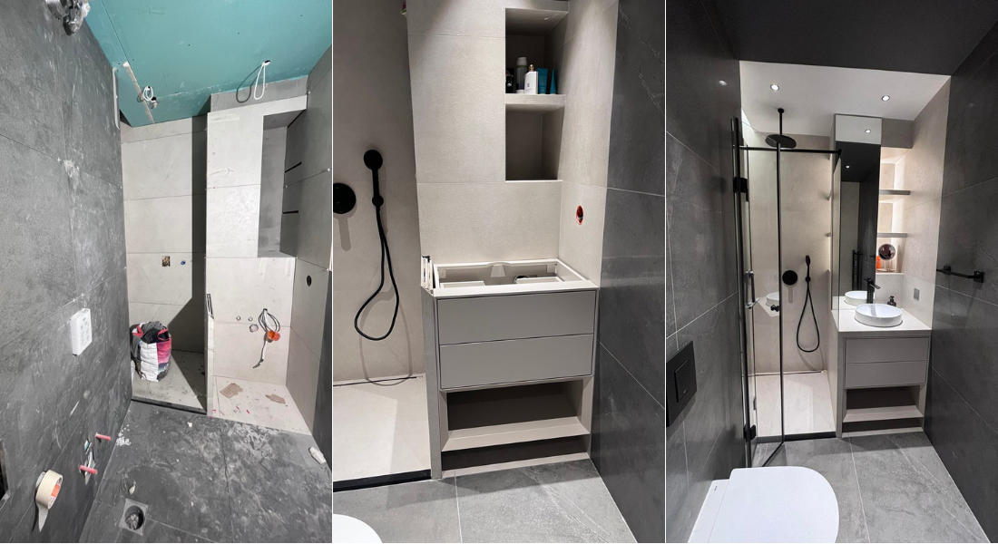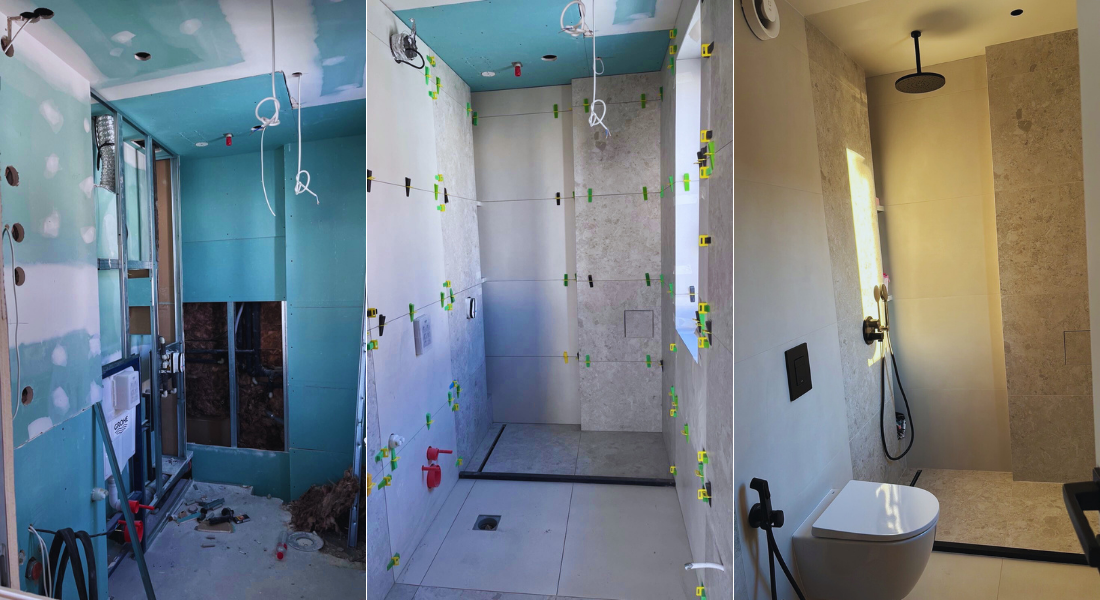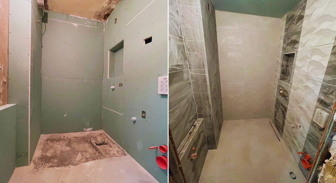 След приключване на тези основни етапи се преминава към подготвителни работи като изграждане на детайли от гипсокартон, полагане на замазка за правилно оформяне на наклоните и поставяне на хидроизолация, за да се осигури дълготрайна защита от влага. Следва поставянето на новите плочки, като особено внимание се обръща на оформянето на ъглите – това може да се осъществи чрез използване на пилен ръб или лайсна, в зависимост от предпочитанията и дизайна.