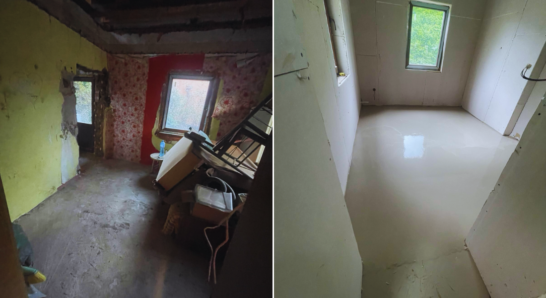 В този проект започнахме цялостна реновация на стара къща, като първата стъпка включваше изграждането на нови инсталации за електро, ВиК и ОВК. Инсталирахме колекторни кутии и направихме изводи за парната инсталация, както и положихме подови замазки за стабилна основа на по-нататъшните довършителни работи.